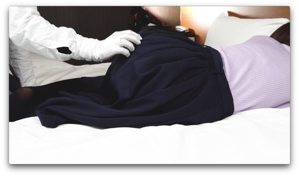 シーン1:脚を組んだり、スカートめくったり、お尻をなでなで