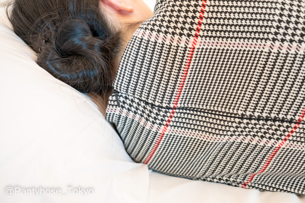 管理人『ワンピの上から裏地を摘まむようにしてパンストの上を滑る』